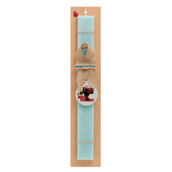 Ηλία ρίχτο!, Easter Set, wooden keychain & aromatic flat Easter candle (30cm) (TURQUOISE)