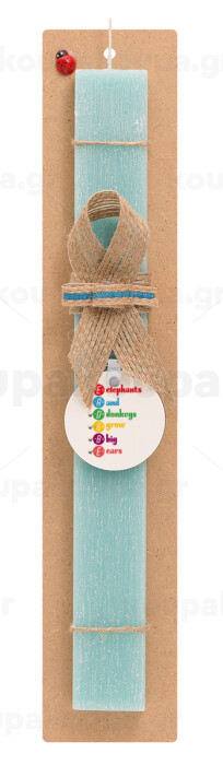 Elephants And Donkeys Grow Big Ears, Easter Set, wooden keychain & aromatic flat Easter candle (30cm) (TURQUOISE)
