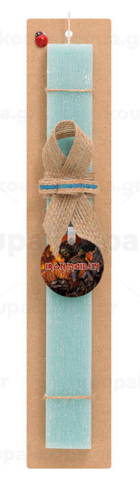 Iron maiden From Fear to Eternity, Easter Set, wooden keychain & aromatic flat Easter candle (30cm) (TURQUOISE)