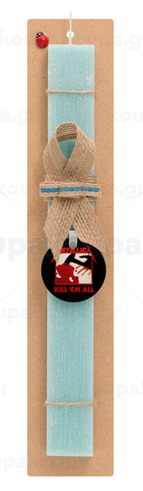 Metallica Kill' em all, Easter Set, wooden keychain & aromatic flat Easter candle (30cm) (TURQUOISE)