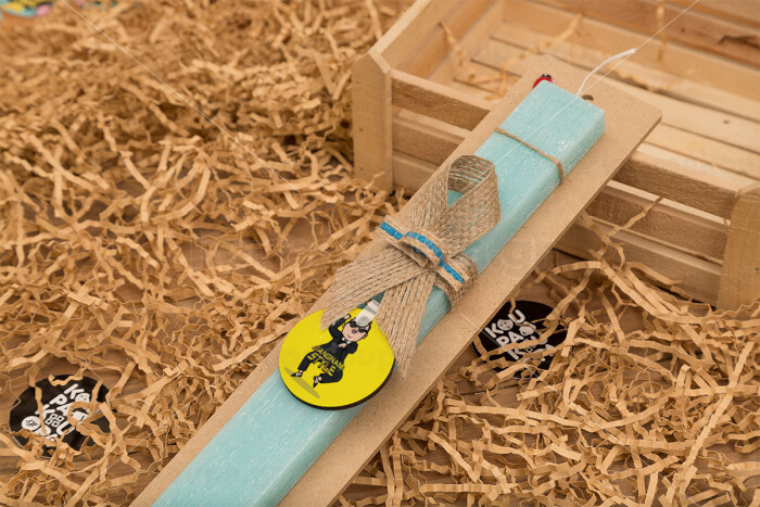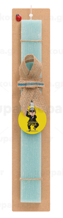 PSY - GANGNAM STYLE, Easter Set, wooden keychain & aromatic flat Easter candle (30cm) (TURQUOISE)