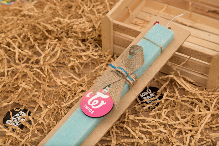 Twice, Easter Set, wooden keychain & aromatic flat Easter candle (30cm) (TURQUOISE)