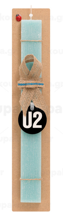U2 , Easter Set, wooden keychain & aromatic flat Easter candle (30cm) (TURQUOISE)