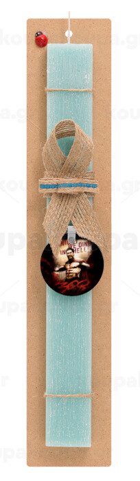 300 Tonight we dine in hell!, Easter Set, wooden keychain & aromatic flat Easter candle (30cm) (TURQUOISE)