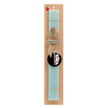 La casa de papel vertical, Easter Set, wooden keychain & aromatic flat Easter candle (30cm) (TURQUOISE)