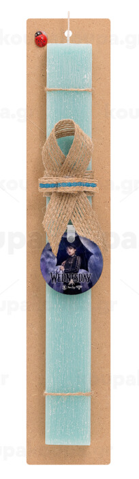 Wednesday rain, Easter Set, wooden keychain & aromatic flat Easter candle (30cm) (TURQUOISE)