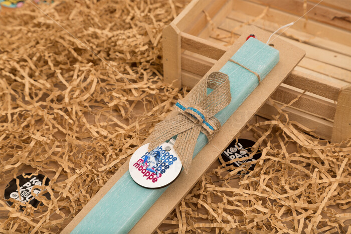 Kylian Mbappé, Easter Set, wooden keychain & aromatic flat Easter candle (30cm) (TURQUOISE)