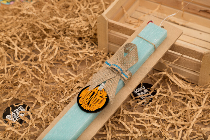 Μάθε μπαλίτσα από τον Άρχοντα, Easter Set, wooden keychain & aromatic flat Easter candle (30cm) (TURQUOISE)