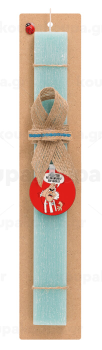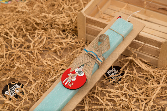 Τάκης, Άντε γεια, με ανώμαλους δεν μιλάω!, Easter Set, wooden keychain & aromatic flat Easter candle (30cm) (TURQUOISE)