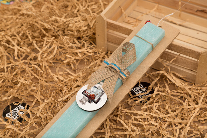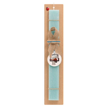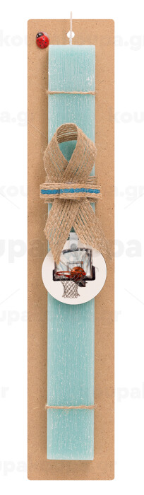 Basketball, Easter Set, wooden keychain & aromatic flat Easter candle (30cm) (TURQUOISE)