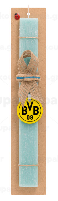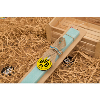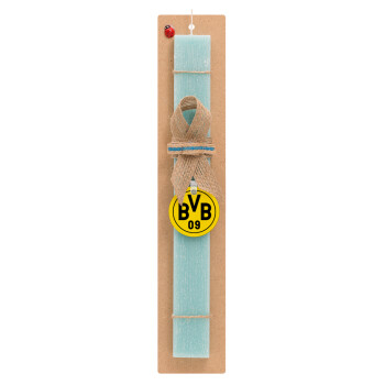 BVB Dortmund, Easter Set, wooden keychain & aromatic flat Easter candle (30cm) (TURQUOISE)