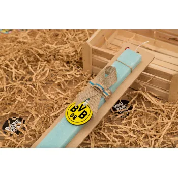 BVB Dortmund, Easter Set, wooden keychain & aromatic flat Easter candle (30cm) (TURQUOISE)