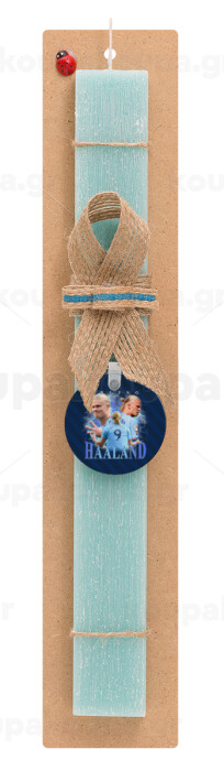 Erling Haaland, Easter Set, wooden keychain & aromatic flat Easter candle (30cm) (TURQUOISE)