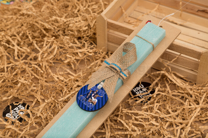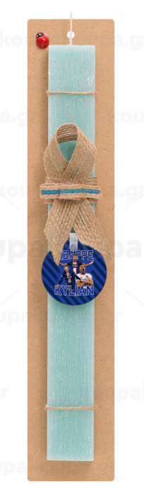 Kylian Mbappé, Easter Set, wooden keychain & aromatic flat Easter candle (30cm) (TURQUOISE)