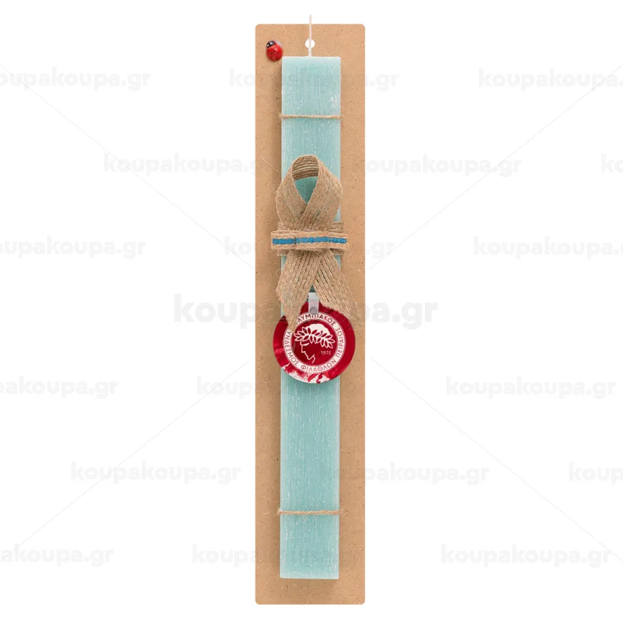 Olympiacos F.C., Easter Set, wooden keychain & aromatic flat Easter candle (30cm) (TURQUOISE)