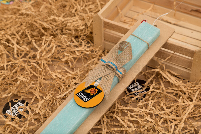 Phoenix Suns, Easter Set, wooden keychain & aromatic flat Easter candle (30cm) (TURQUOISE)