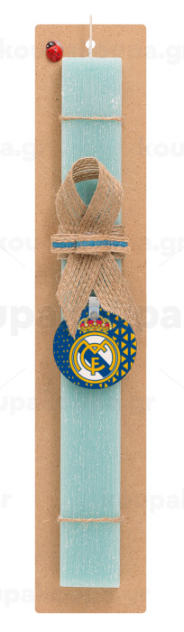 Real Madrid CF, Easter Set, wooden keychain & aromatic flat Easter candle (30cm) (TURQUOISE)
