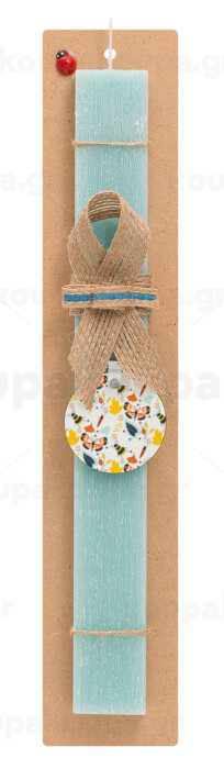 Πεταλούδες, Easter Set, wooden keychain & aromatic flat Easter candle (30cm) (TURQUOISE)