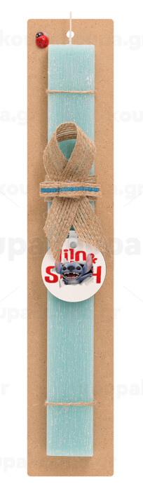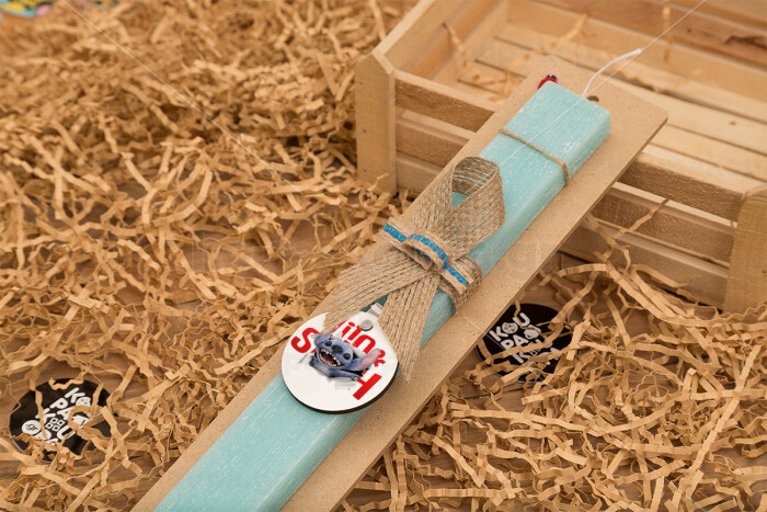 Stitch movie, Easter Set, wooden keychain & aromatic flat Easter candle (30cm) (TURQUOISE)