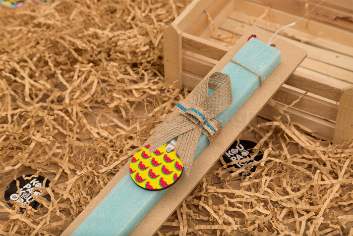 Καρπουζάκια, Easter Set, wooden keychain & aromatic flat Easter candle (30cm) (TURQUOISE)