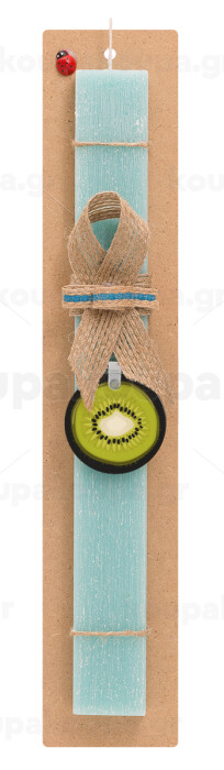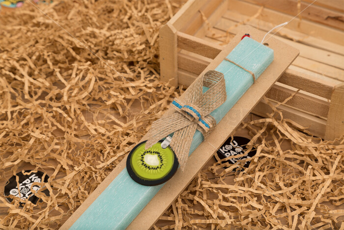 Kiwi, Easter Set, wooden keychain & aromatic flat Easter candle (30cm) (TURQUOISE)