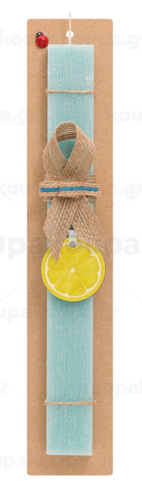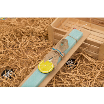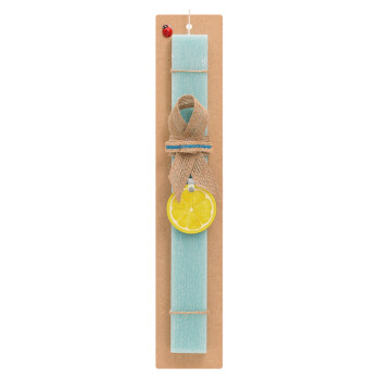 Lemon, Easter Set, wooden keychain & aromatic flat Easter candle (30cm) (TURQUOISE)