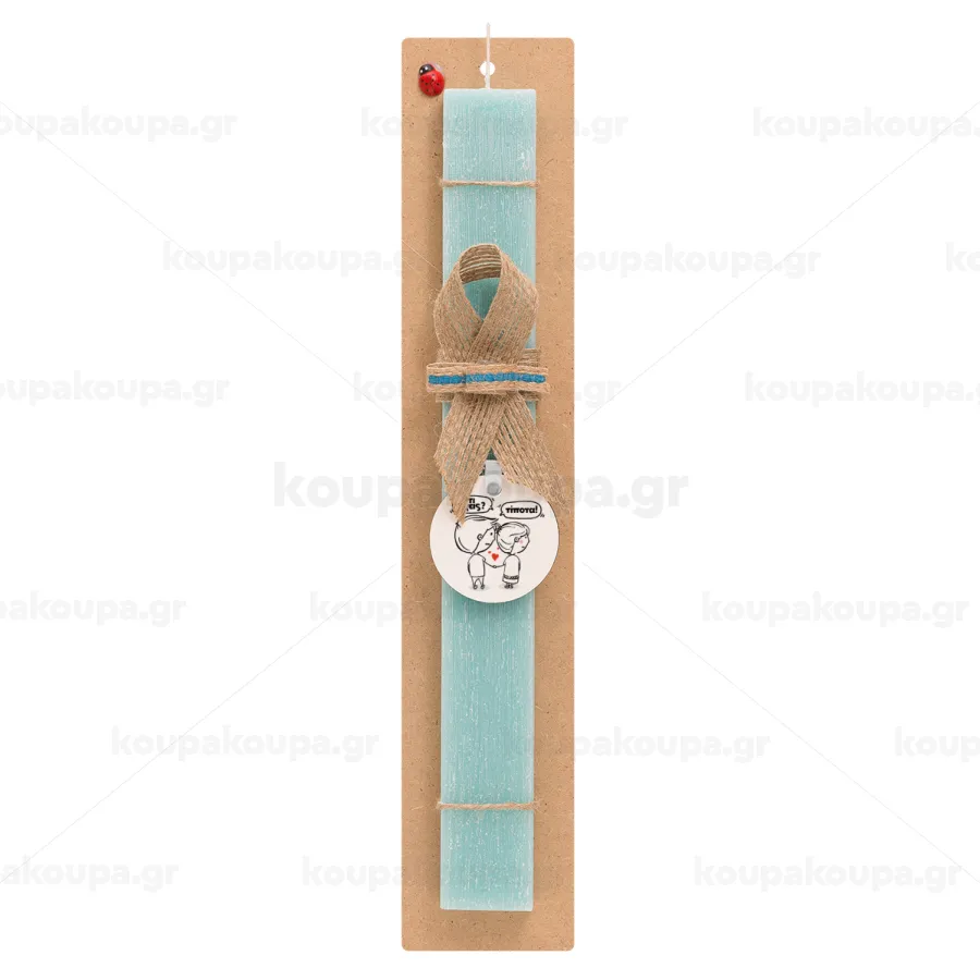 Τι έχεις? Τίποτα!, Easter Set, wooden keychain & aromatic flat Easter candle (30cm) (TURQUOISE)