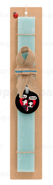 Τι έχεις? Τίποτα!, Easter Set, wooden keychain & aromatic flat Easter candle (30cm) (TURQUOISE)