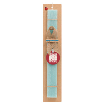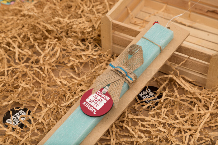 Τρίλιζα you won my heart, Easter Set, wooden keychain & aromatic flat Easter candle (30cm) (TURQUOISE)
