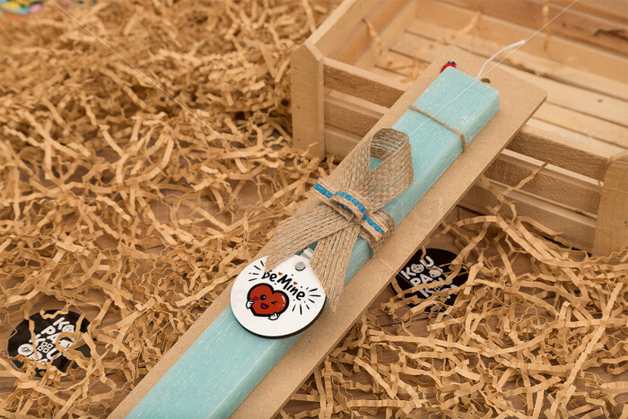 Be mine!, Easter Set, wooden keychain & aromatic flat Easter candle (30cm) (TURQUOISE)