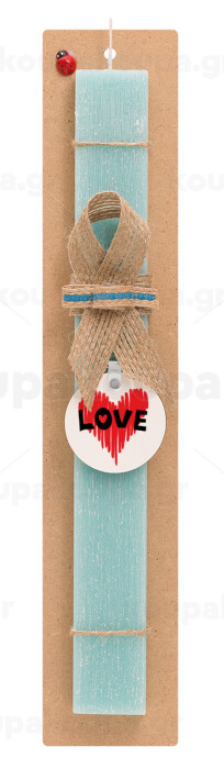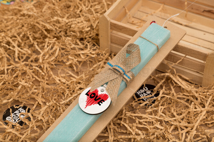 I Love You red heart, Easter Set, wooden keychain & aromatic flat Easter candle (30cm) (TURQUOISE)