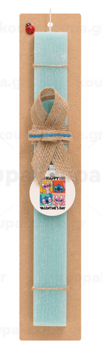 Lilo & Stitch Happy valentines day, Easter Set, wooden keychain & aromatic flat Easter candle (30cm) (TURQUOISE)