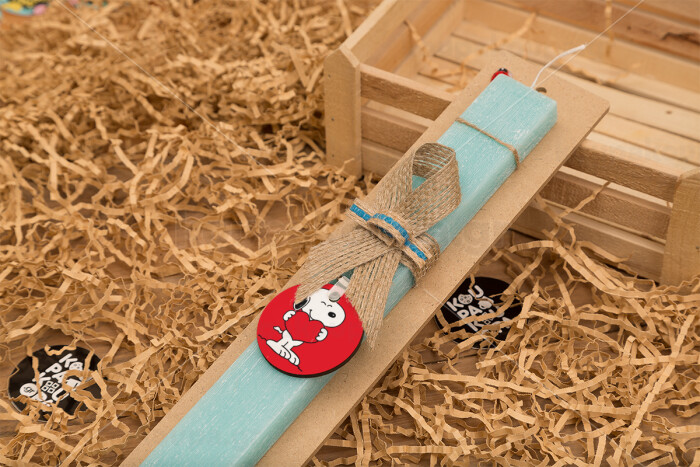 Snoopy takemy heart, Easter Set, wooden keychain & aromatic flat Easter candle (30cm) (TURQUOISE)