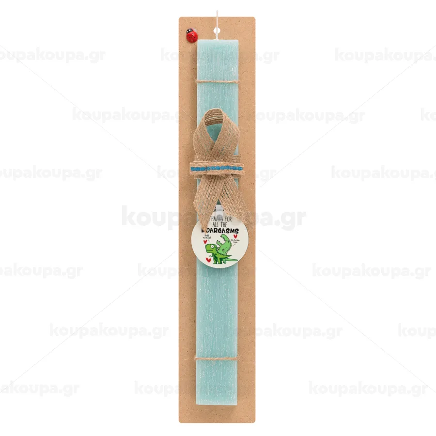 Thanks for all the ROARGASMS, Easter Set, wooden keychain & aromatic flat Easter candle (30cm) (TURQUOISE)