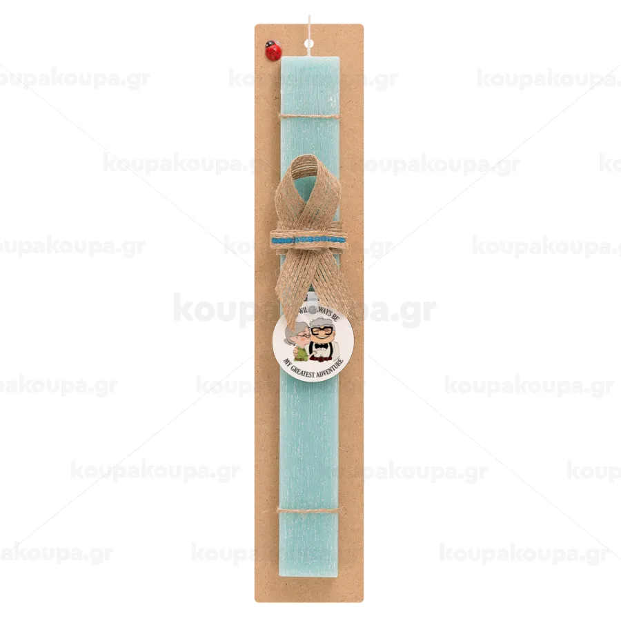 UP, YOU WILL ALWAYS BE MY GREATEST ADVENTURE, Easter Set, wooden keychain & aromatic flat Easter candle (30cm) (TURQUOISE)
