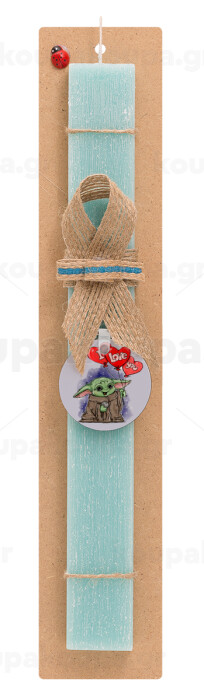 Yoda, i love you, Easter Set, wooden keychain & aromatic flat Easter candle (30cm) (TURQUOISE)