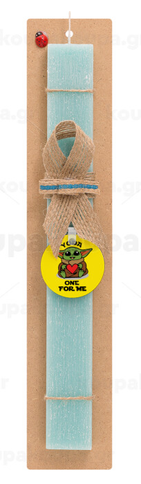 Yoda, one for me , Easter Set, wooden keychain & aromatic flat Easter candle (30cm) (TURQUOISE)