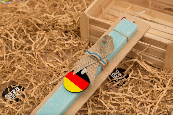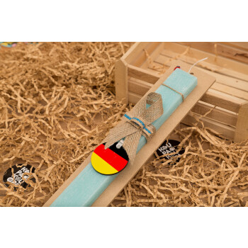 Germany flag, Easter Set, wooden keychain & aromatic flat Easter candle (30cm) (TURQUOISE)