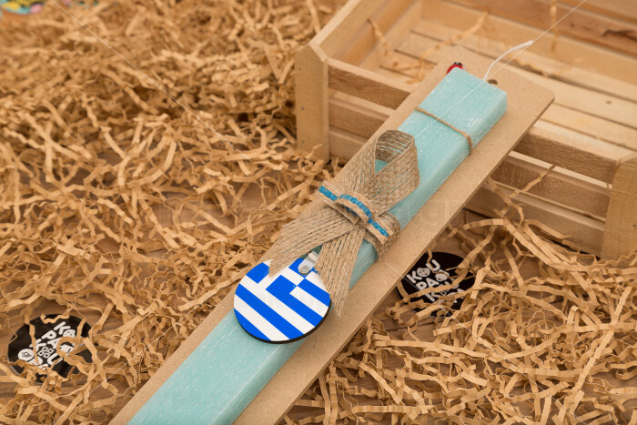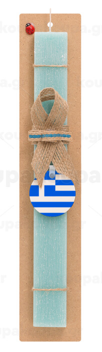 Greece flag, Easter Set, wooden keychain & aromatic flat Easter candle (30cm) (TURQUOISE)