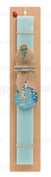Greek map, Easter Set, wooden keychain & aromatic flat Easter candle (30cm) (TURQUOISE)