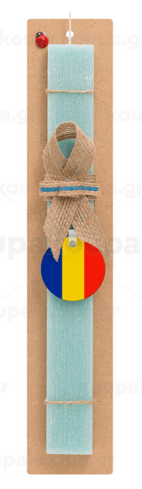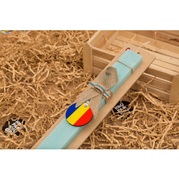 Romania flag, Easter Set, wooden keychain & aromatic flat Easter candle (30cm) (TURQUOISE)