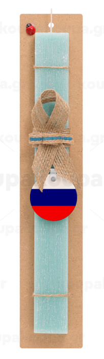 Russia flag, Easter Set, wooden keychain & aromatic flat Easter candle (30cm) (TURQUOISE)