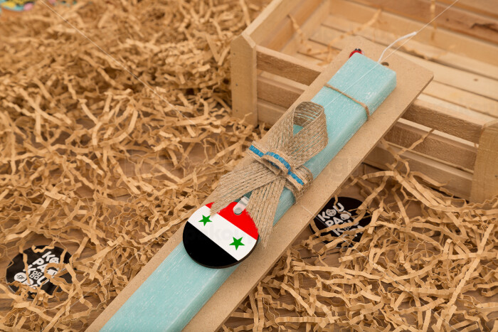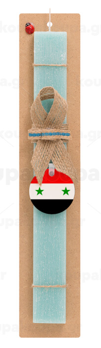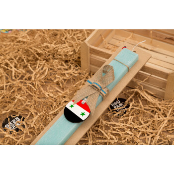 Syria flag, Easter Set, wooden keychain & aromatic flat Easter candle (30cm) (TURQUOISE)