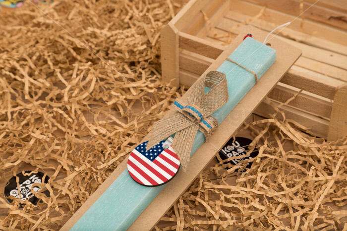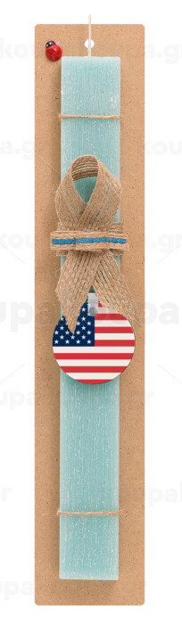 USA flag, Easter Set, wooden keychain & aromatic flat Easter candle (30cm) (TURQUOISE)