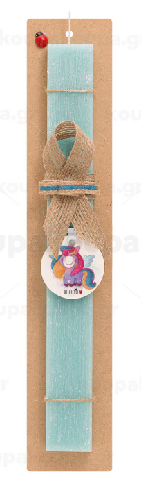 Pink unicorn, Easter Set, wooden keychain & aromatic flat Easter candle (30cm) (TURQUOISE)