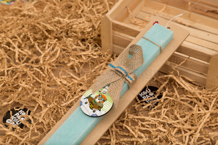 Kids Plane, Easter Set, wooden keychain & aromatic flat Easter candle (30cm) (TURQUOISE)