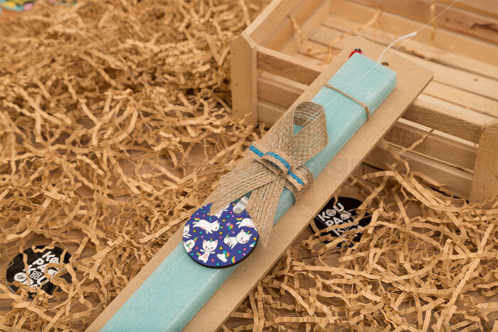 Cats unicorns, Easter Set, wooden keychain & aromatic flat Easter candle (30cm) (TURQUOISE)