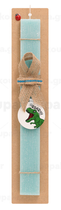 Dyno roar!!!, Easter Set, wooden keychain & aromatic flat Easter candle (30cm) (TURQUOISE)
