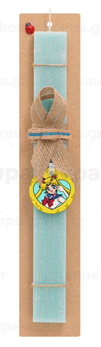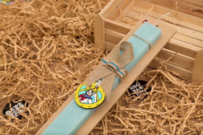 Sailor Moon star, Easter Set, wooden keychain & aromatic flat Easter candle (30cm) (TURQUOISE)