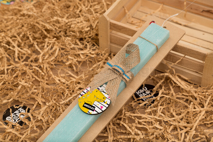 t-rex , Easter Set, wooden keychain & aromatic flat Easter candle (30cm) (TURQUOISE)
